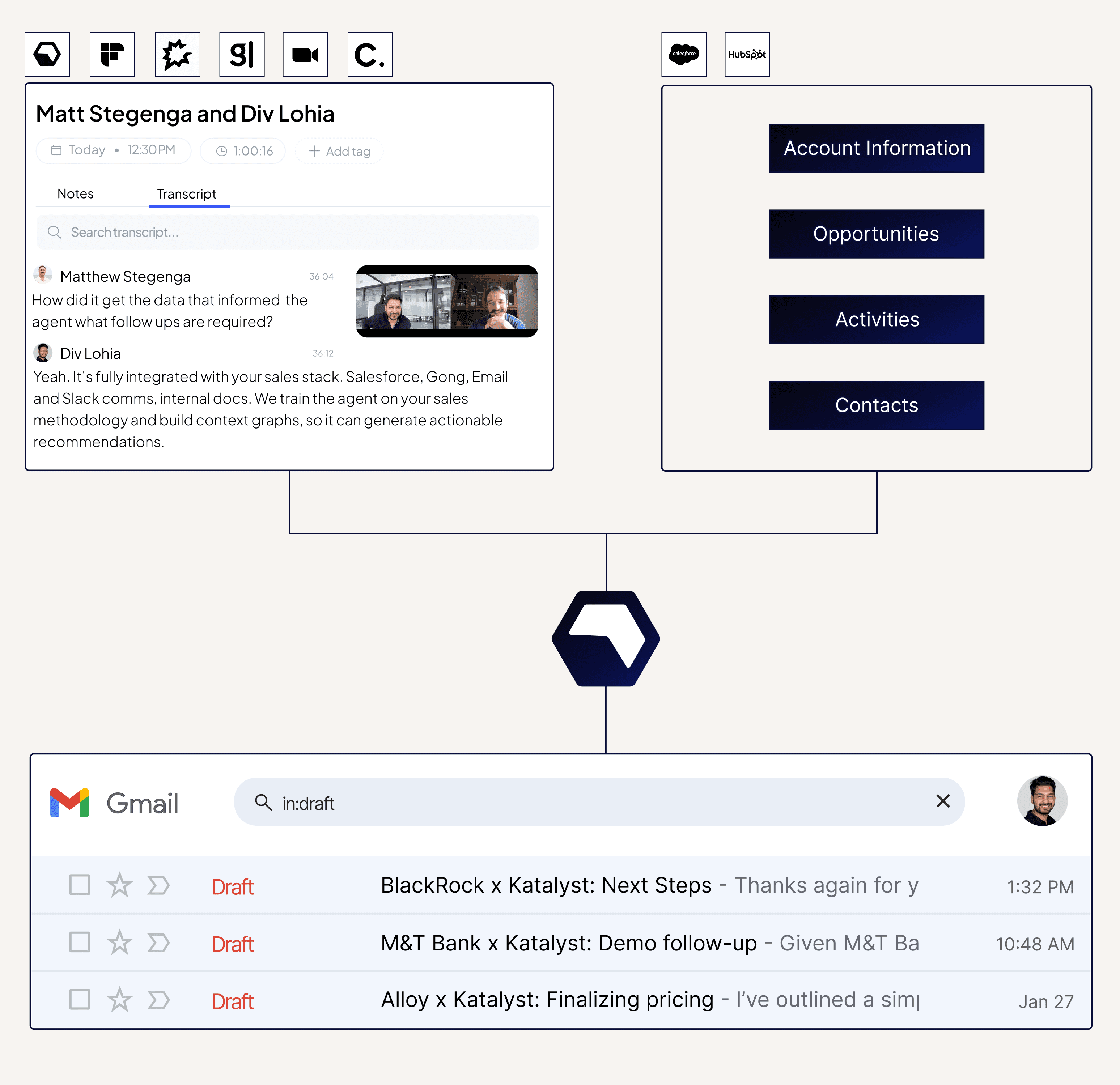 Katalyst handles everything I’d manually do to prep for a call—automatically. The internal context it provides is a game-changer, and now I can’t imagine going back.
